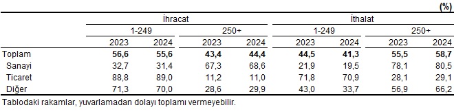 İhracatın %44,4'ünü, ithalatın ise %58,7'sini büyük ölçekli girişimler gerçekleştirdi