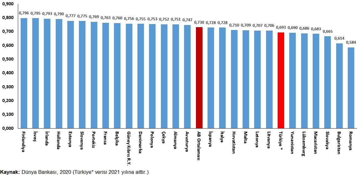 Beşeri Sermaye Endeks değerinin AB üye ülkeleri ile mukayesesi, 2020