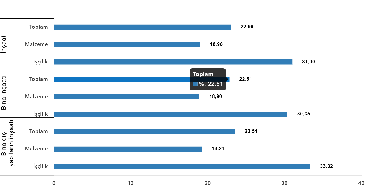 Bina inşaatı maliyet endeksi, bir önceki aya göre %1,21 arttı, bir önceki yılın aynı ayına göre %22,81 arttı. Bir önceki aya göre malzeme endeksi %1,55 arttı, işçilik endeksi %0,61 arttı. Ayrıca bir önceki yılın aynı ayına göre malzeme endeksi %18,90 arttı, işçilik endeksi %30,35 arttı.