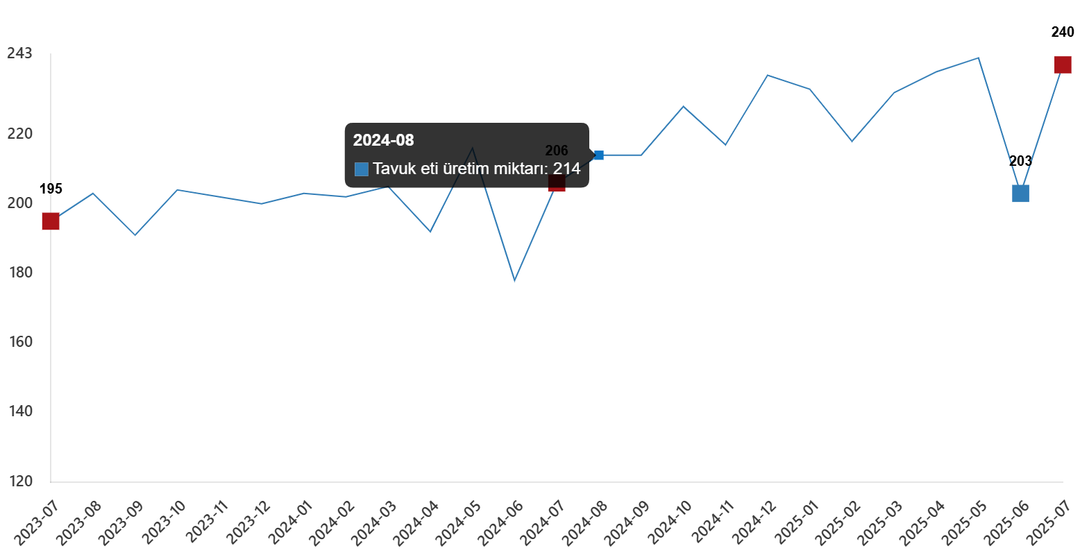 Tavuk eti üretim miktarı, Temmuz 2025