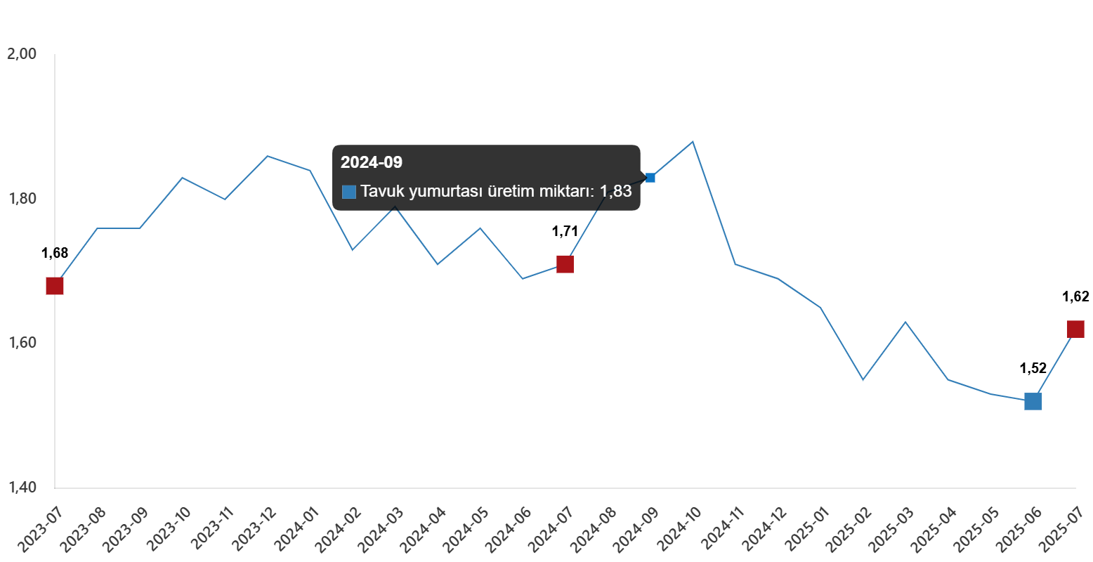 Tavuk yumurtası üretim miktarı, Temmuz 2025
