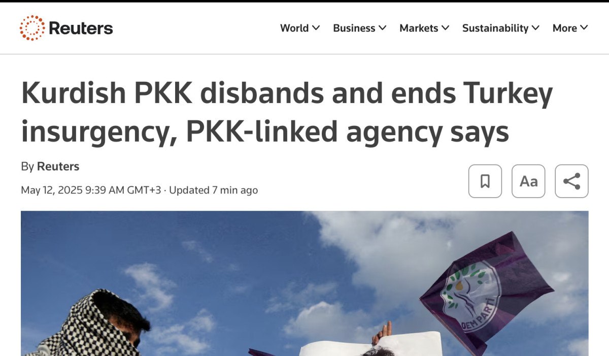 İngiliz medyasının güvenilir kaynaklarından Reuters, PKK'nın fesih kararını 'PKK Kendini Feshetti, Türkiye’deki Silahlı İsyan Sona Erdi' başlığıyla duyurdu.