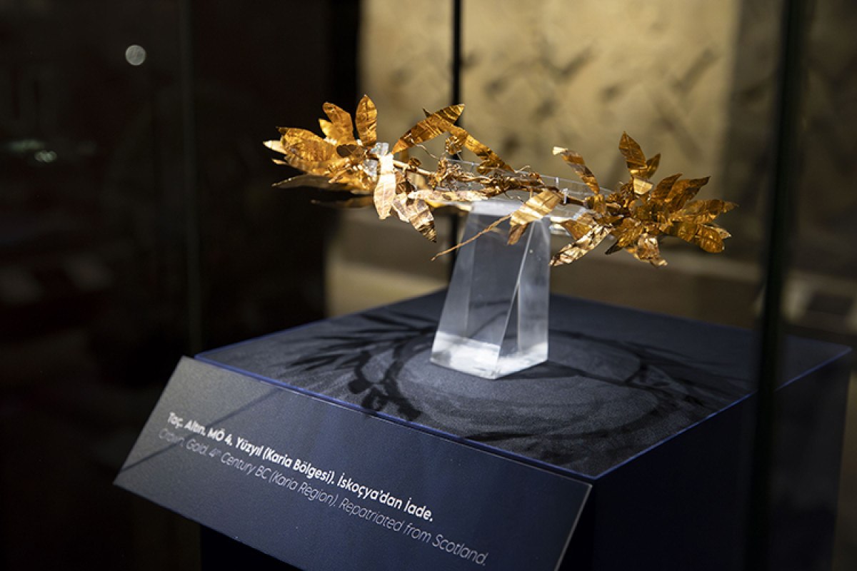 Ana vatanına geri getirilen eserler arasında yer alan Altın Taç, İskoçya'dan iadesi sağlanmıştır. MÖ 4. yüzyıla tarihlenen ve Karya bölgesine ait olduğu düşünülen eserin mülkiyeti Türkiye'ye verilmiş ve 2018'de ülkeye iade edilmiştir.